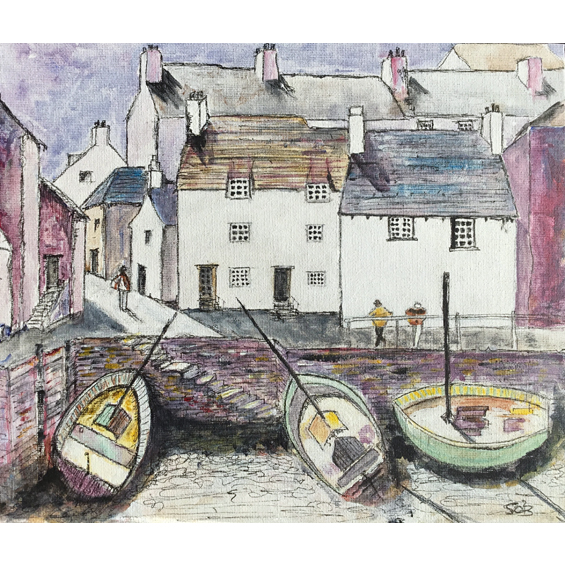 Boats at Port Isaac - after Sheila Gill (watercolour)